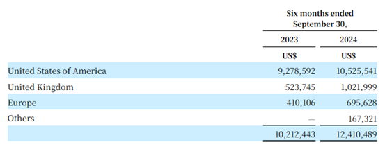 而在截至2024年9月的半年内,金电科技的营收约1241万美元,同比增长约21.5%,收入增加主要是美国和英国的销售额增加到1154.75万美元。期内,毛利润约161万美元,净利润约58.6万美元,较上年同期有些许下滑。